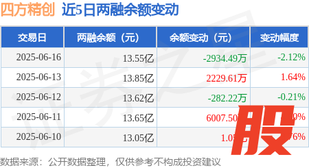 本站消息,6月16日,四方精创(300468)融资买入7.53亿元,融资偿还7.83亿元倍加网配资,融资净卖出2935.04万元,融资余额13.55亿元。